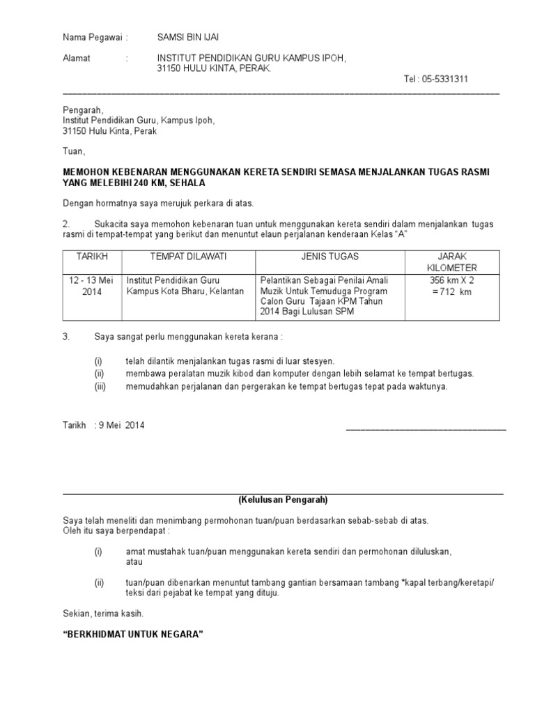 Surat Kebenaran Menggunakan Kenderaan Sendiri Letter 7saudara Com